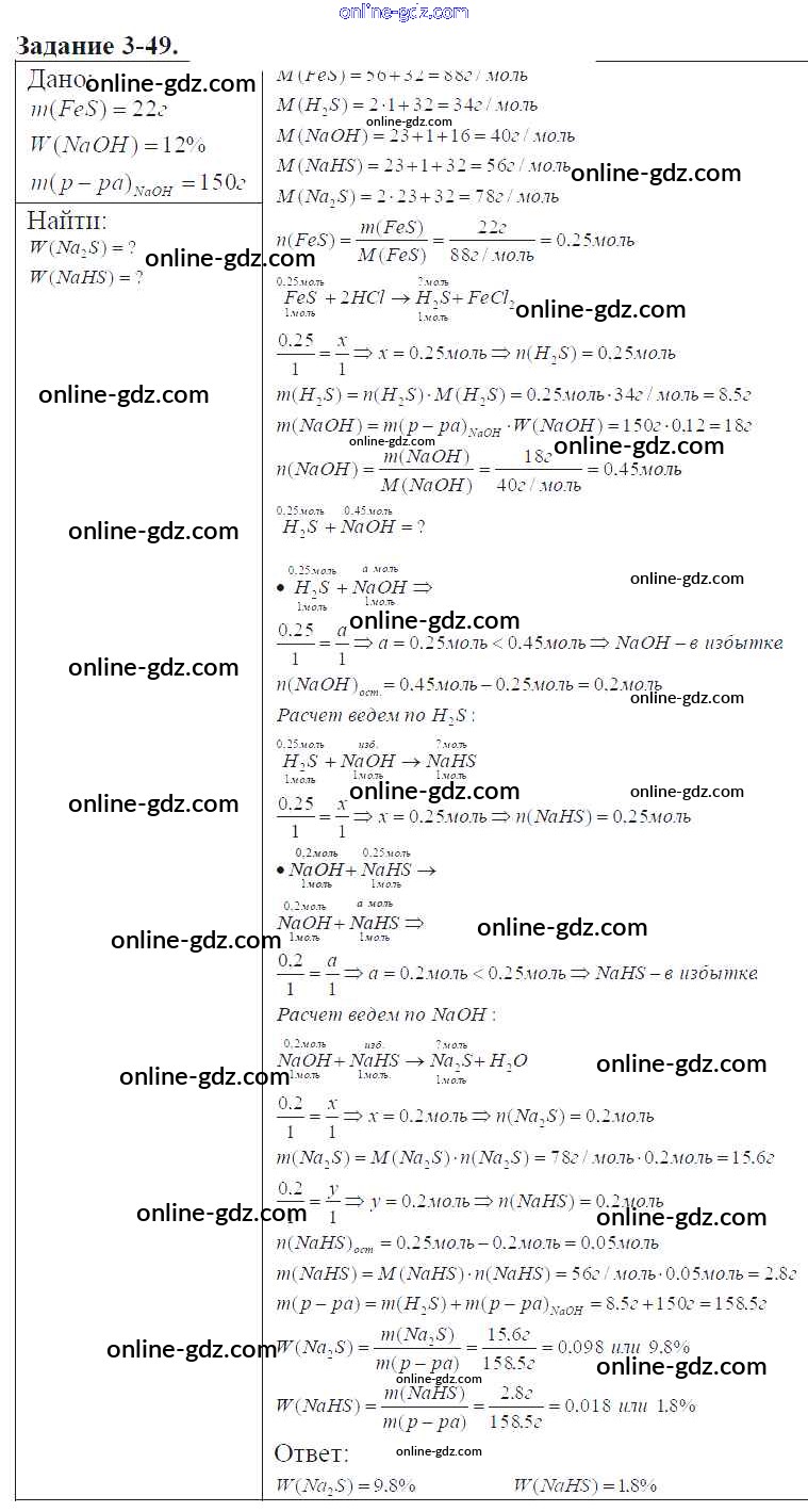 Готовые домашние задания по Химии за 9 класс Задачник Кузнецова, Левкин Алгоритм успеха 2015 - Глава №3. Сера. Соединения серы 3-49