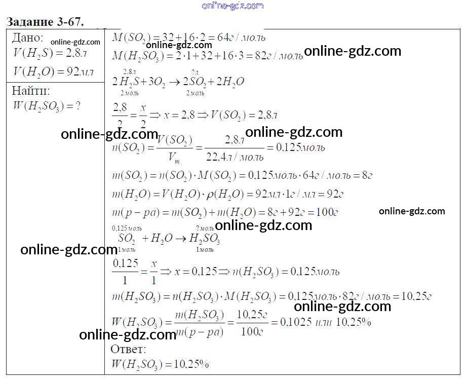 Готовые домашние задания по Химии за 9 класс Задачник Кузнецова, Левкин Алгоритм успеха 2015 - Глава №3. Сера. Соединения серы 3-67
