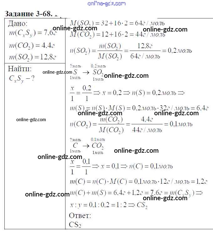 Готовые домашние задания по Химии за 9 класс Задачник Кузнецова, Левкин Алгоритм успеха 2015 - Глава №3. Сера. Соединения серы 3-68