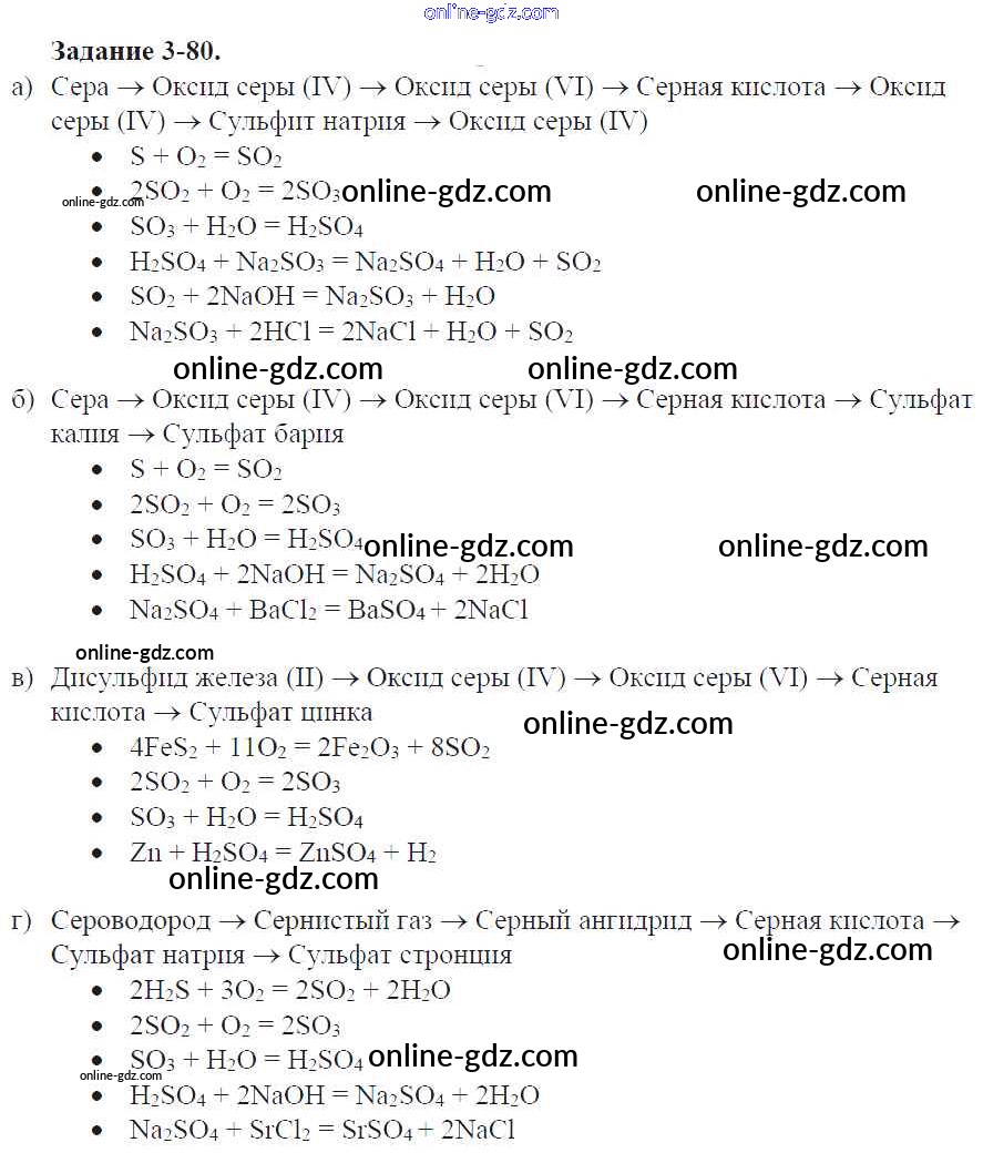 Готовые домашние задания по Химии за 9 класс Задачник Кузнецова, Левкин Алгоритм успеха 2015 - Глава №3. Сера. Соединения серы 3-80