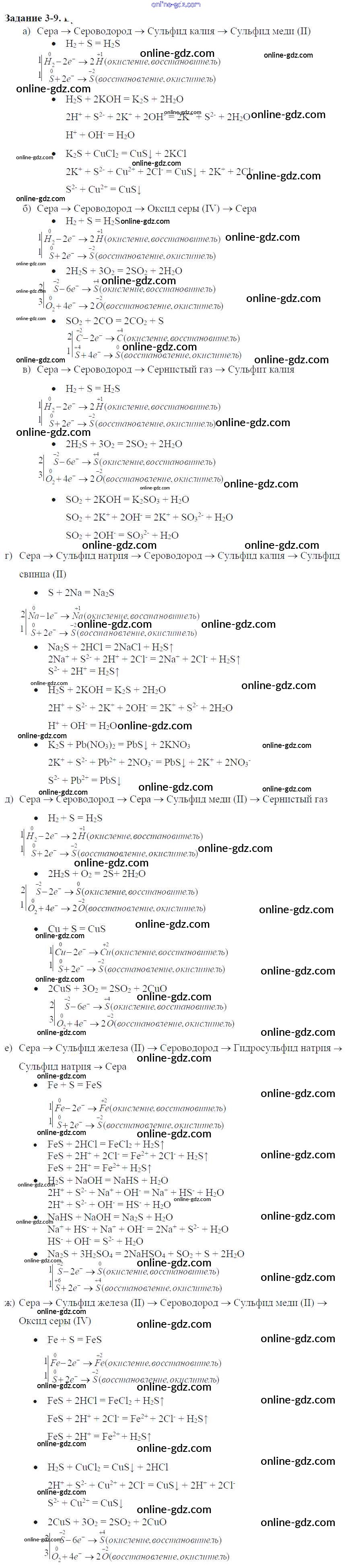 Готовые домашние задания по Химии за 9 класс Задачник Кузнецова, Левкин Алгоритм успеха 2015 - Глава №3. Сера. Соединения серы 3-9