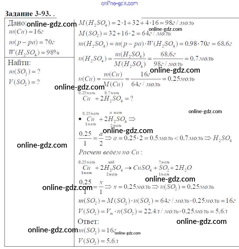 Готовые домашние задания по Химии за 9 класс Задачник Кузнецова, Левкин Алгоритм успеха 2015 - Глава №3. Сера. Соединения серы 3-93