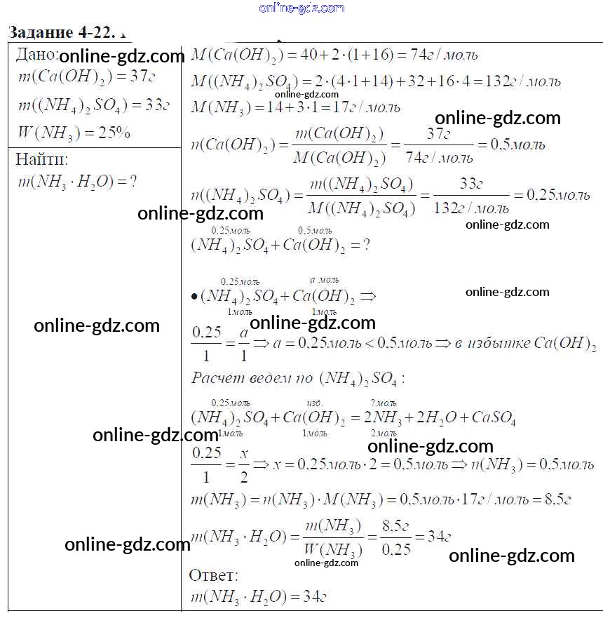 Готовые домашние задания по Химии за 9 класс Задачник Кузнецова, Левкин Алгоритм успеха 2015 - Глава №4. Азот. Соединения азота 4-22