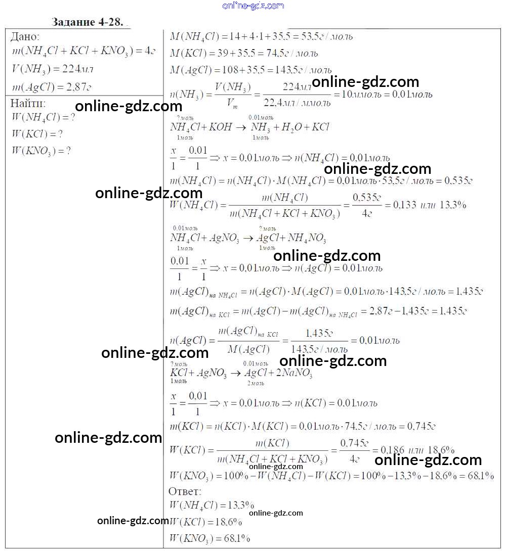Готовые домашние задания по Химии за 9 класс Задачник Кузнецова, Левкин Алгоритм успеха 2015 - Глава №4. Азот. Соединения азота 4-28