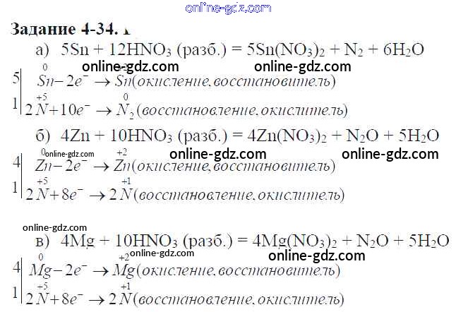 Готовые домашние задания по Химии за 9 класс Задачник Кузнецова, Левкин Алгоритм успеха 2015 - Глава №4. Азот. Соединения азота 4-34
