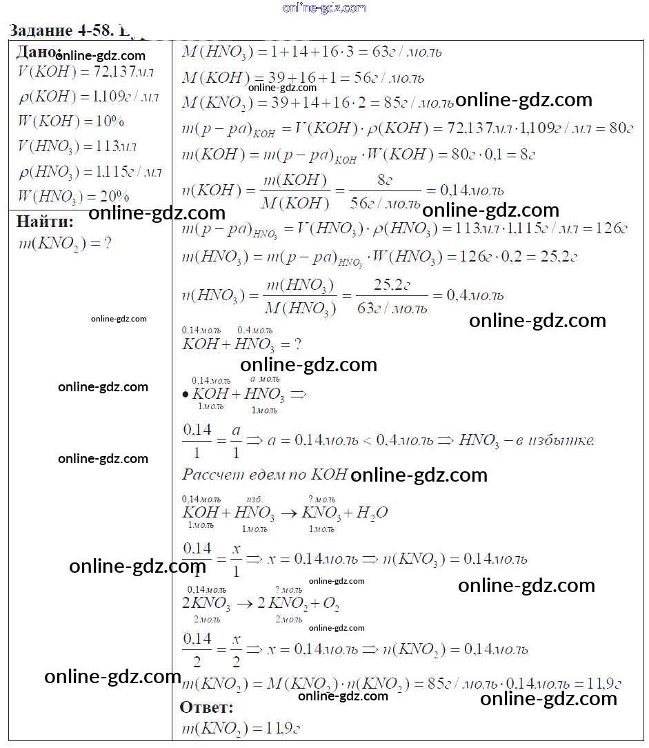 Готовые домашние задания по Химии за 9 класс Задачник Кузнецова, Левкин Алгоритм успеха 2015 - Глава №4. Азот. Соединения азота 4-58