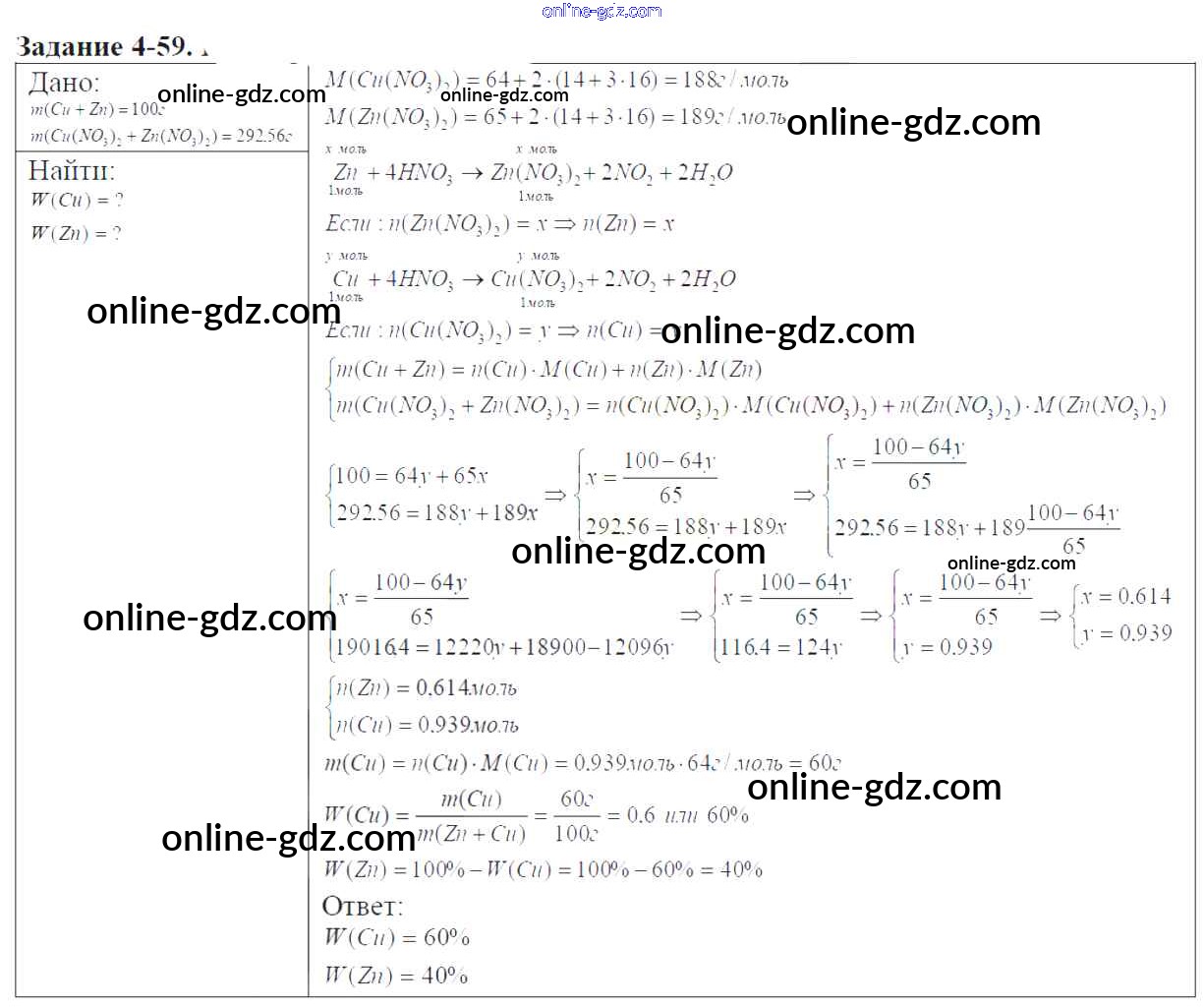 Готовые домашние задания по Химии за 9 класс Задачник Кузнецова, Левкин Алгоритм успеха 2015 - Глава №4. Азот. Соединения азота 4-59