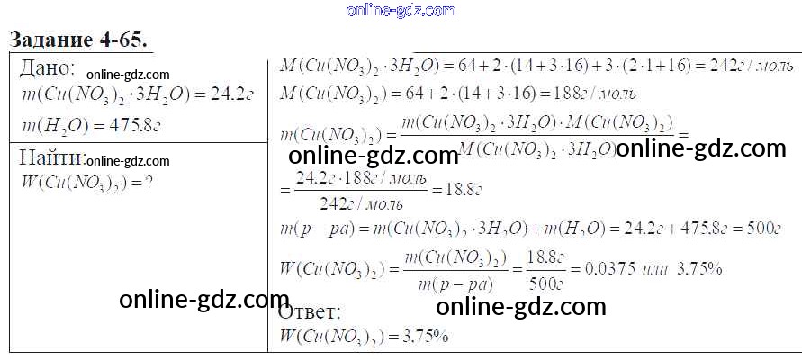 Готовые домашние задания по Химии за 9 класс Задачник Кузнецова, Левкин Алгоритм успеха 2015 - Глава №4. Азот. Соединения азота 4-65