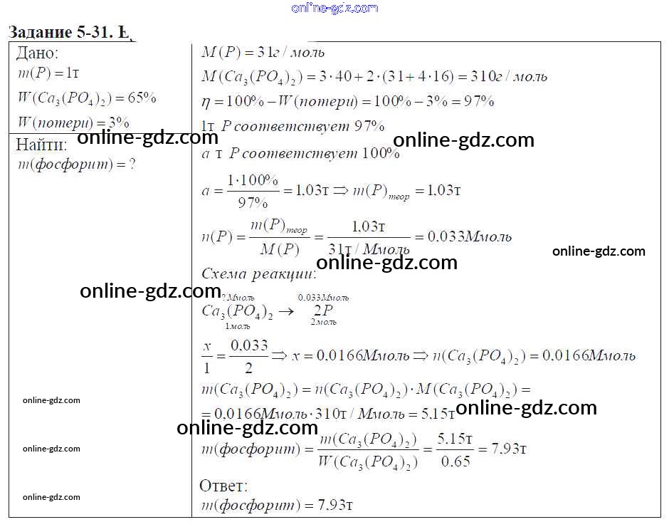 Готовые домашние задания по Химии за 9 класс Задачник Кузнецова, Левкин Алгоритм успеха 2015 - Глава №5. Фосфор. Соединения фосфора 5-31