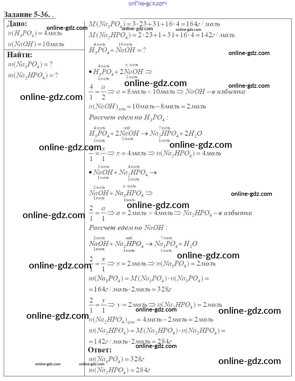 Готовые домашние задания по Химии за 9 класс Задачник Кузнецова, Левкин Алгоритм успеха 2015 - Глава №5. Фосфор. Соединения фосфора 5-36