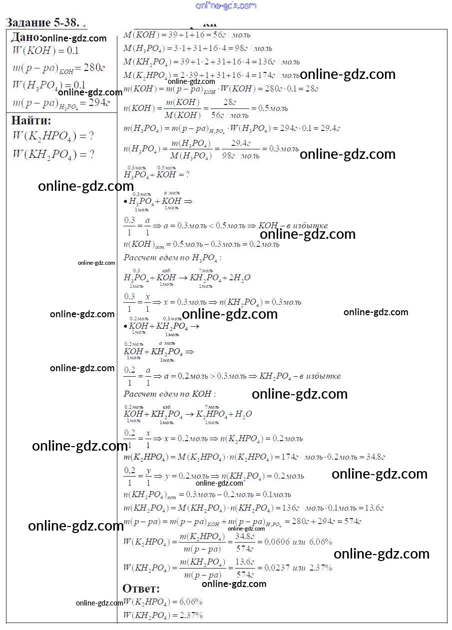 Готовые домашние задания по Химии за 9 класс Задачник Кузнецова, Левкин Алгоритм успеха 2015 - Глава №5. Фосфор. Соединения фосфора 5-38