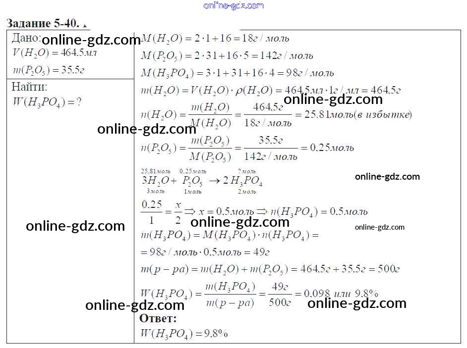 Готовые домашние задания по Химии за 9 класс Задачник Кузнецова, Левкин Алгоритм успеха 2015 - Глава №5. Фосфор. Соединения фосфора 5-40