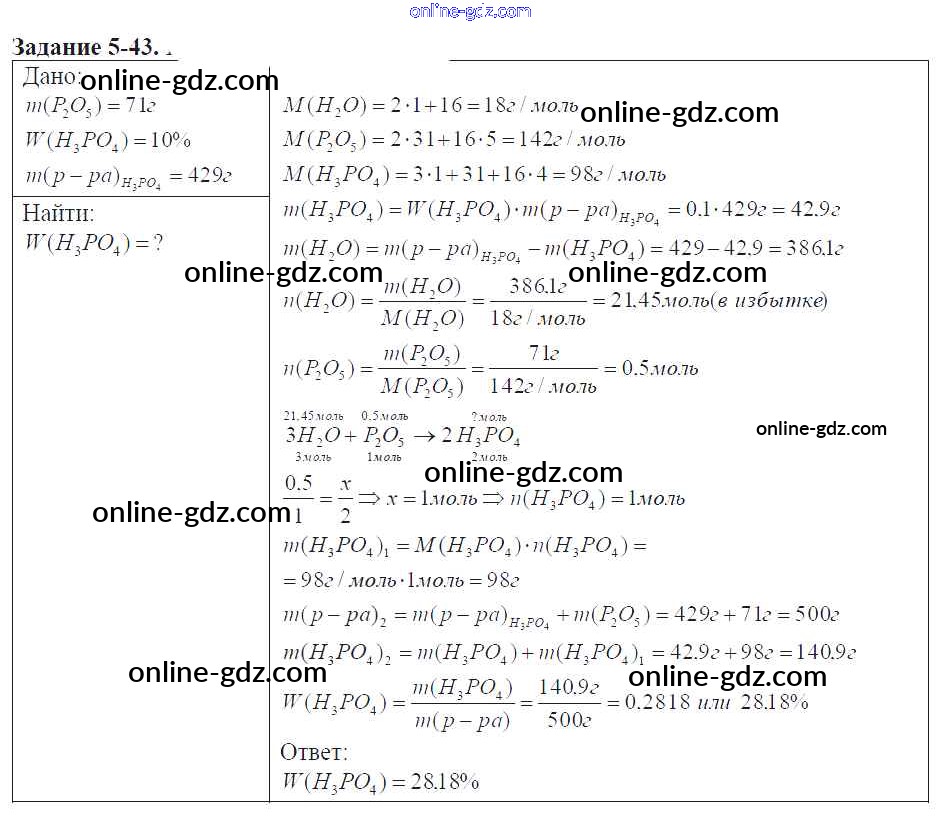 Готовые домашние задания по Химии за 9 класс Задачник Кузнецова, Левкин Алгоритм успеха 2015 - Глава №5. Фосфор. Соединения фосфора 5-43