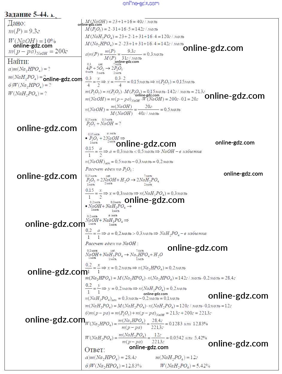Готовые домашние задания по Химии за 9 класс Задачник Кузнецова, Левкин Алгоритм успеха 2015 - Глава №5. Фосфор. Соединения фосфора 5-44