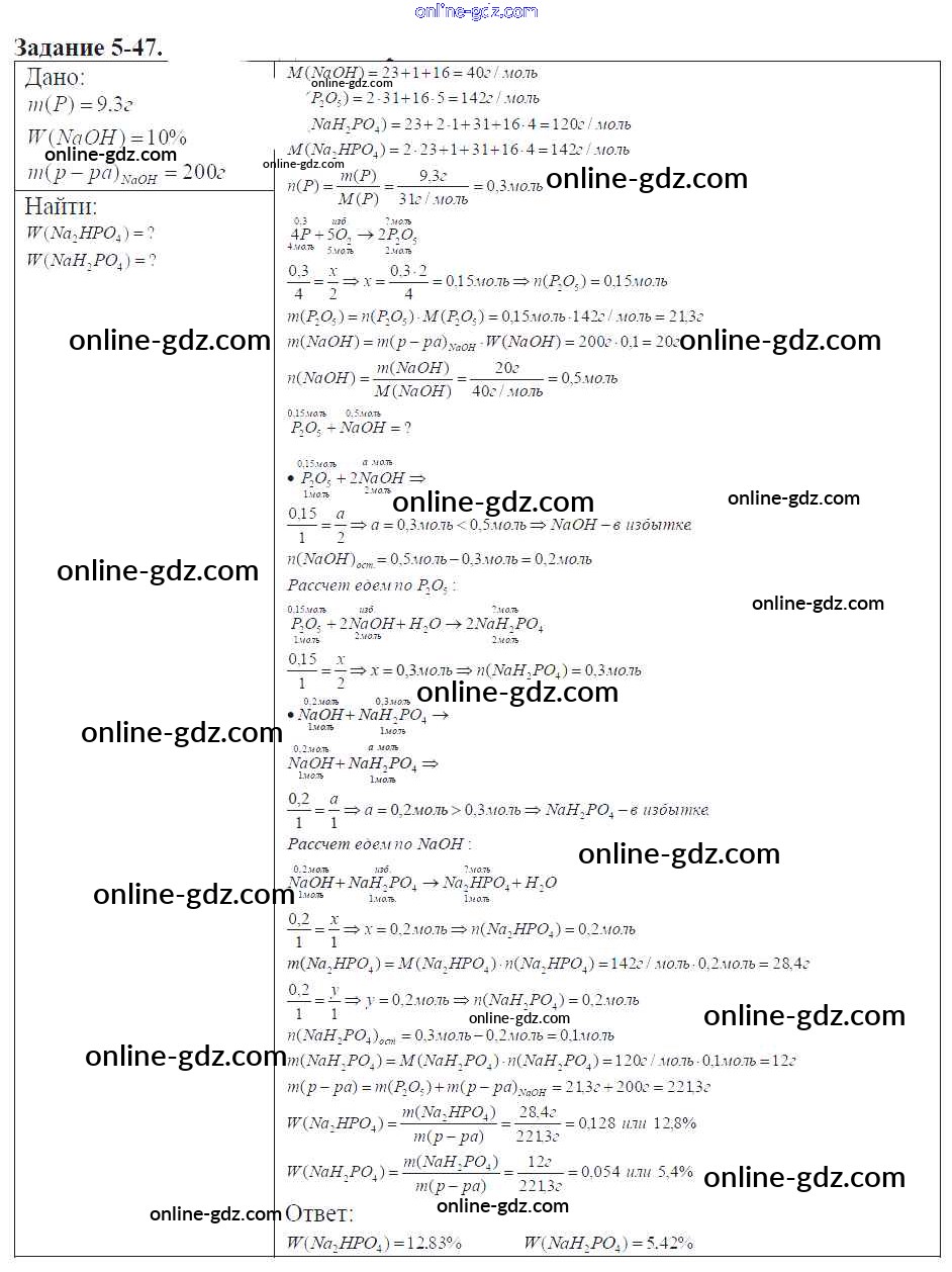 Готовые домашние задания по Химии за 9 класс Задачник Кузнецова, Левкин Алгоритм успеха 2015 - Глава №5. Фосфор. Соединения фосфора 5-47