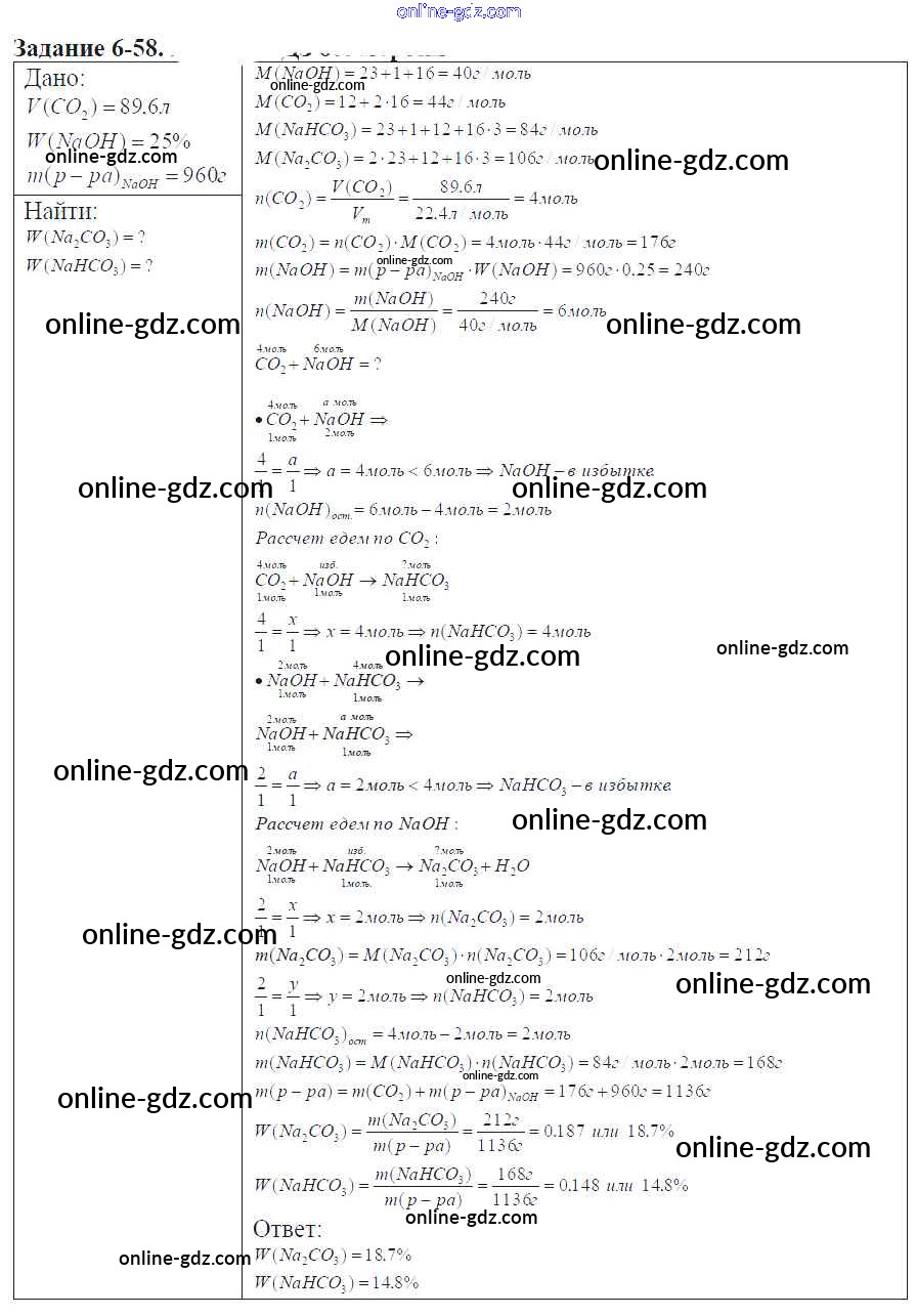 Готовые домашние задания по Химии за 9 класс Задачник Кузнецова, Левкин Алгоритм успеха 2015 - Глава №6. Углерод и кремний 6-58