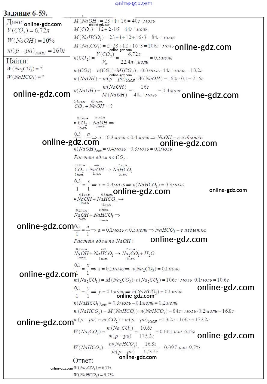Готовые домашние задания по Химии за 9 класс Задачник Кузнецова, Левкин Алгоритм успеха 2015 - Глава №6. Углерод и кремний 6-59