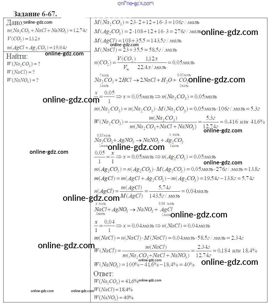 Готовые домашние задания по Химии за 9 класс Задачник Кузнецова, Левкин Алгоритм успеха 2015 - Глава №6. Углерод и кремний 6-67