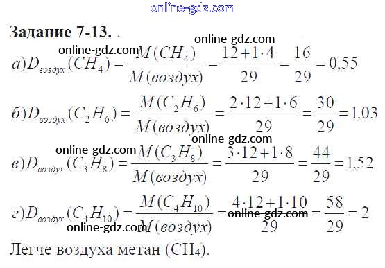 Готовые домашние задания по Химии за 9 класс Задачник Кузнецова, Левкин Алгоритм успеха 2015 - Глава №7. Общие сведения об органических соединениях 7-13