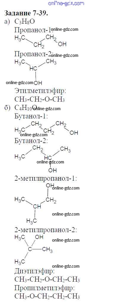 Готовые домашние задания по Химии за 9 класс Задачник Кузнецова, Левкин Алгоритм успеха 2015 - Глава №7. Общие сведения об органических соединениях 7-39