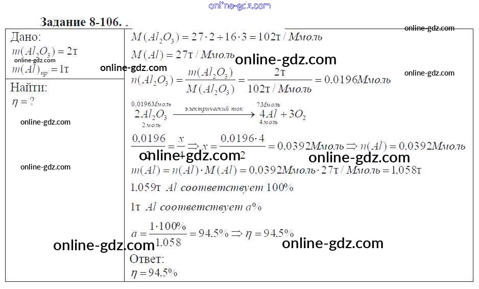 Готовые домашние задания по Химии за 9 класс Задачник Кузнецова, Левкин Алгоритм успеха 2015 - Глава №8. Металлы 8-106