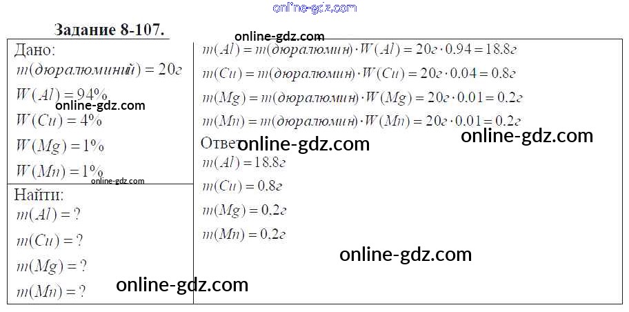 Готовые домашние задания по Химии за 9 класс Задачник Кузнецова, Левкин Алгоритм успеха 2015 - Глава №8. Металлы 8-107