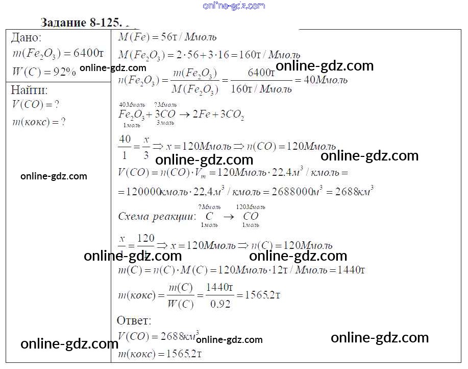 Готовые домашние задания по Химии за 9 класс Задачник Кузнецова, Левкин Алгоритм успеха 2015 - Глава №8. Металлы 8-125