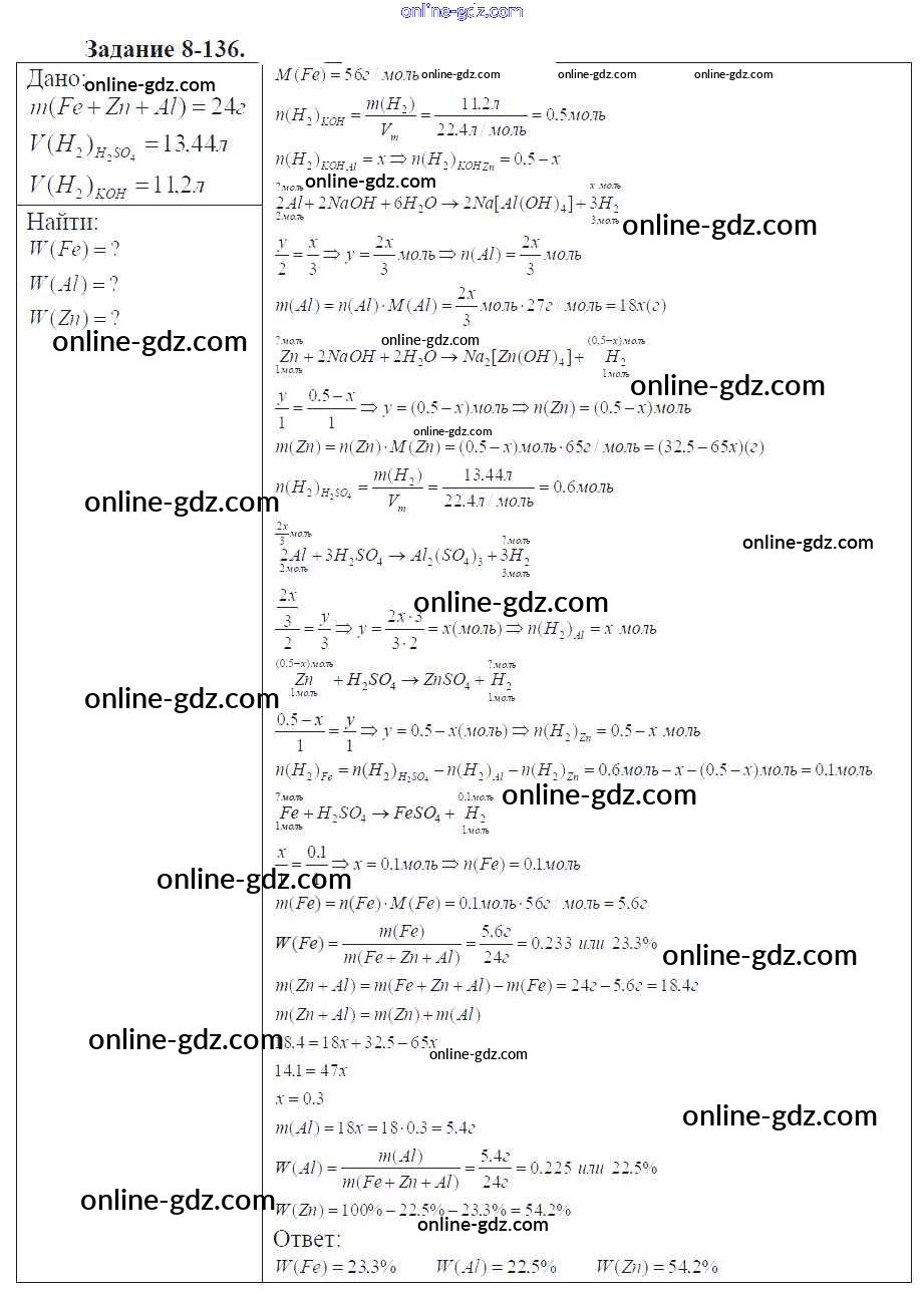 Готовые домашние задания по Химии за 9 класс Задачник Кузнецова, Левкин Алгоритм успеха 2015 - Глава №8. Металлы 8-136