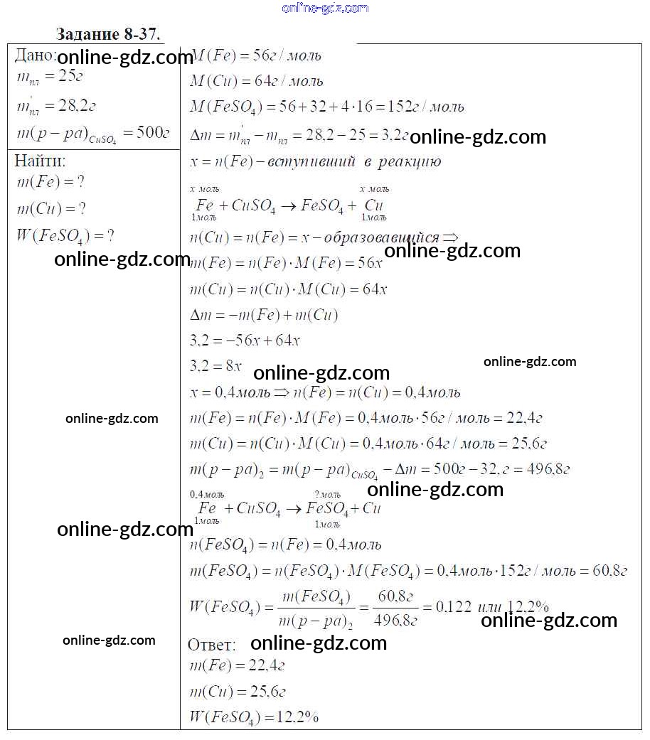 Готовые домашние задания по Химии за 9 класс Задачник Кузнецова, Левкин Алгоритм успеха 2015 - Глава №8. Металлы 8-37