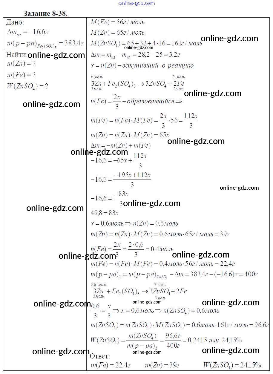 Готовые домашние задания по Химии за 9 класс Задачник Кузнецова, Левкин Алгоритм успеха 2015 - Глава №8. Металлы 8-38