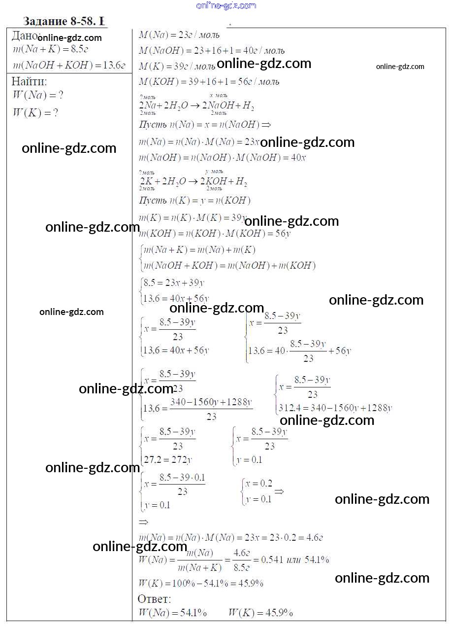 Готовые домашние задания по Химии за 9 класс Задачник Кузнецова, Левкин Алгоритм успеха 2015 - Глава №8. Металлы 8-58
