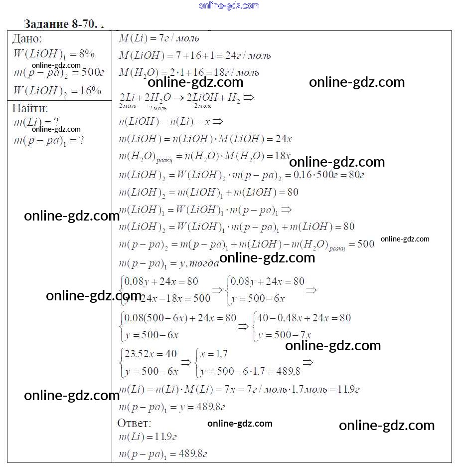 Готовые домашние задания по Химии за 9 класс Задачник Кузнецова, Левкин Алгоритм успеха 2015 - Глава №8. Металлы 8-70