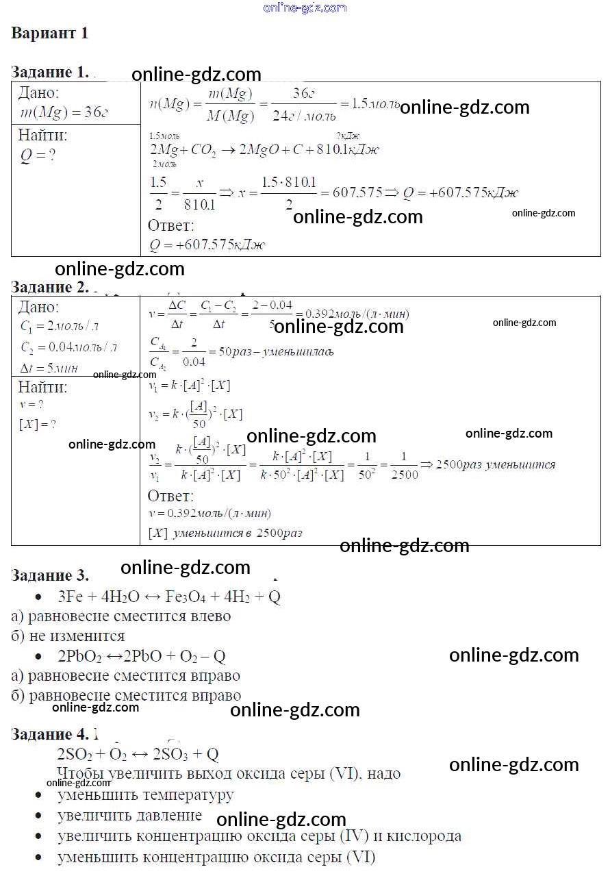Готовые домашние задания по Химии за 9 класс Задачник Кузнецова, Левкин Алгоритм успеха 2015 - Глава 1 Контрольные работы вариант-1