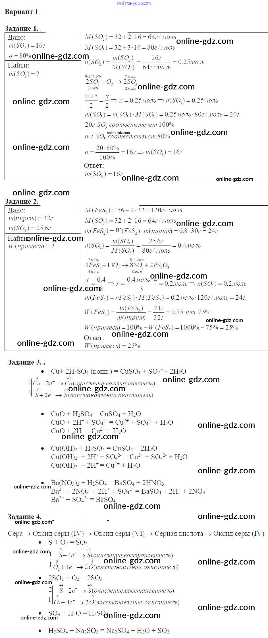 Готовые домашние задания по Химии за 9 класс Задачник Кузнецова, Левкин Алгоритм успеха 2015 - Глава 3 Контрольные работы вариант-1