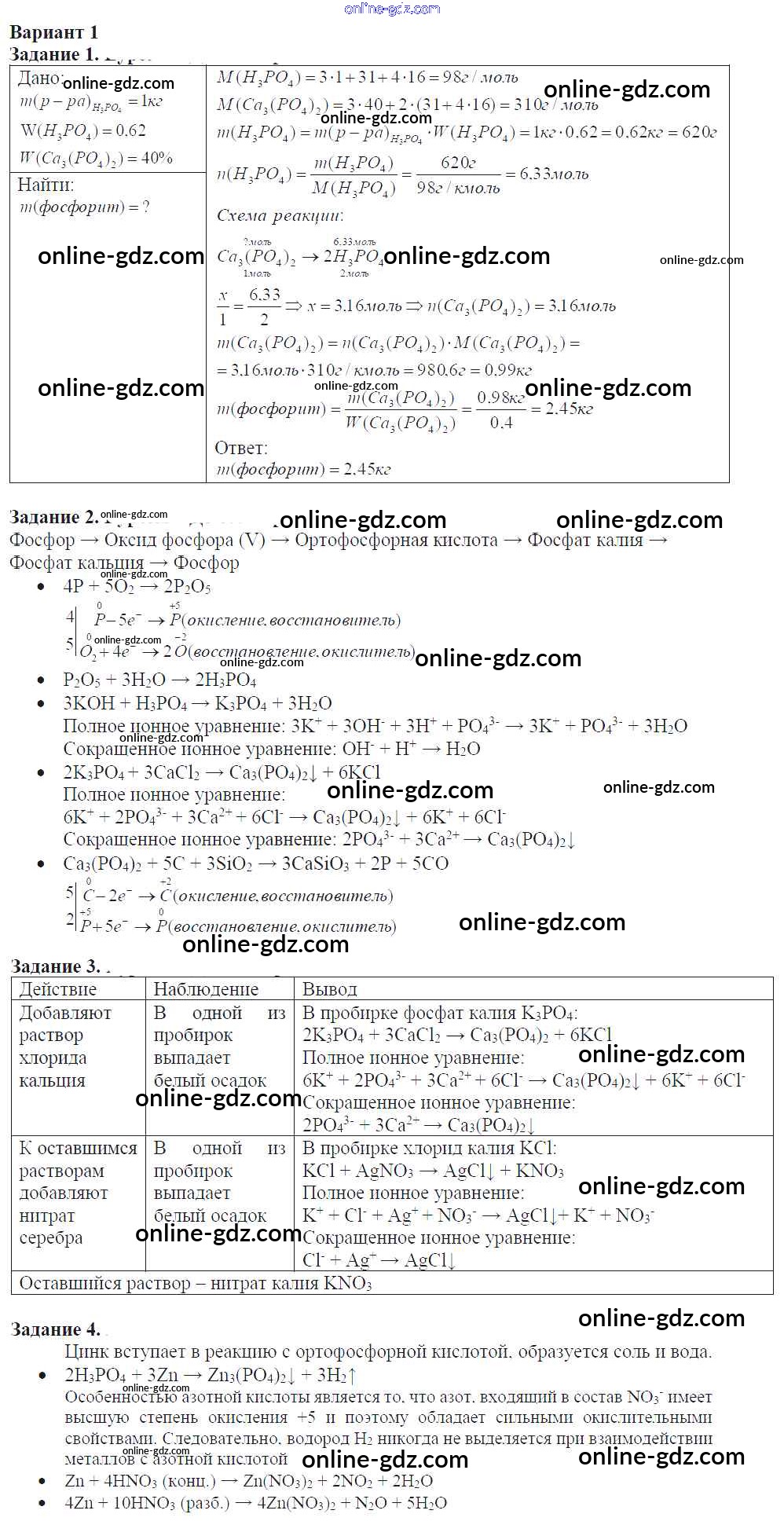 Готовые домашние задания по Химии за 9 класс Задачник Кузнецова, Левкин Алгоритм успеха 2015 - Глава 5 Контрольные работы вариант-1