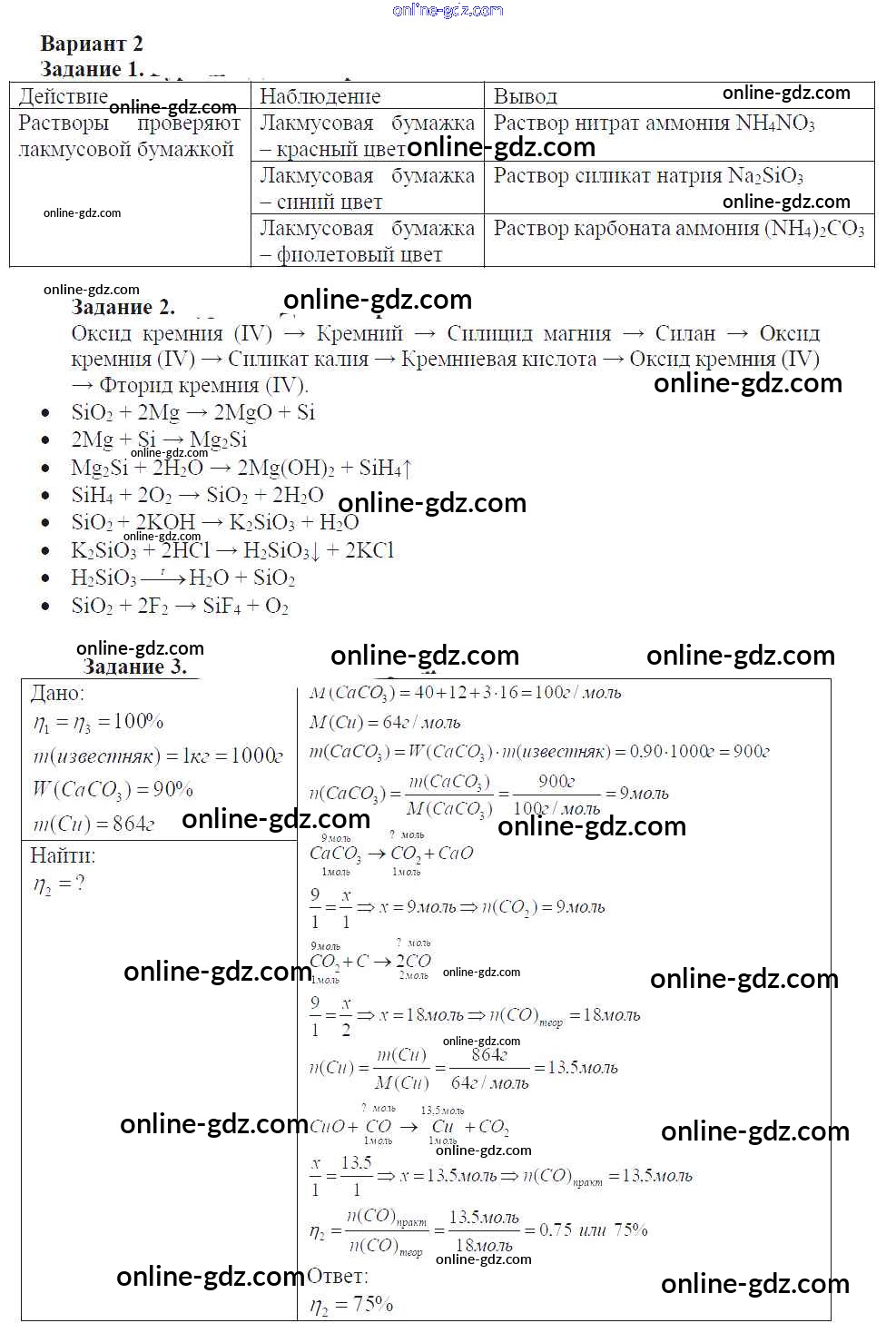 Готовые домашние задания по Химии за 9 класс Задачник Кузнецова, Левкин Алгоритм успеха 2015 - Глава 6 Контрольные работы вариант-2