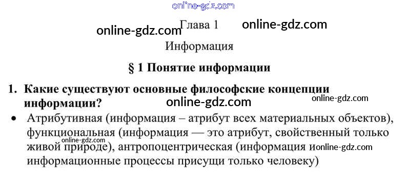 Готовые домашние задания по Информатике за 10 класс Учебник Семакин, Хеннер Базовый уровень 2017 - §1. Понятие информации 1
