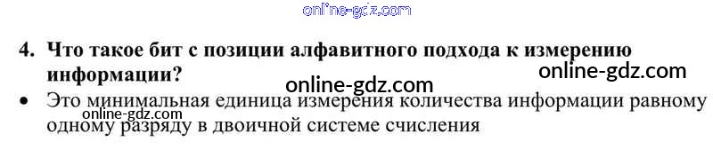 Готовые домашние задания по Информатике за 10 класс Учебник Семакин, Хеннер Базовый уровень 2017 - §3. Измерение информации. Алфавитный подход 4