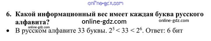 Готовые домашние задания по Информатике за 10 класс Учебник Семакин, Хеннер Базовый уровень 2017 - §3. Измерение информации. Алфавитный подход 6