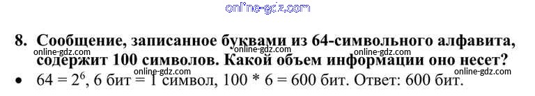 Готовые домашние задания по Информатике за 10 класс Учебник Семакин, Хеннер Базовый уровень 2017 - §3. Измерение информации. Алфавитный подход 8