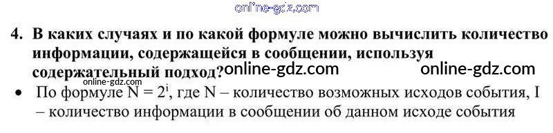 Готовые домашние задания по Информатике за 10 класс Учебник Семакин, Хеннер Базовый уровень 2017 - §4. Измерение информации. Содержательный подход 4