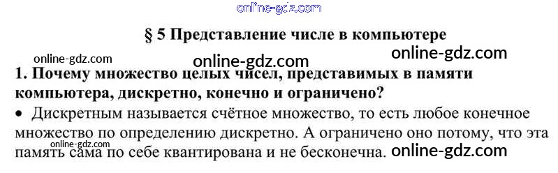 Готовые домашние задания по Информатике за 10 класс Учебник Семакин, Хеннер Базовый уровень 2017 - §5. Представление чисел в компьютере 1
