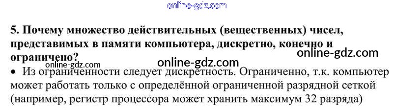 Готовые домашние задания по Информатике за 10 класс Учебник Семакин, Хеннер Базовый уровень 2017 - §5. Представление чисел в компьютере 5