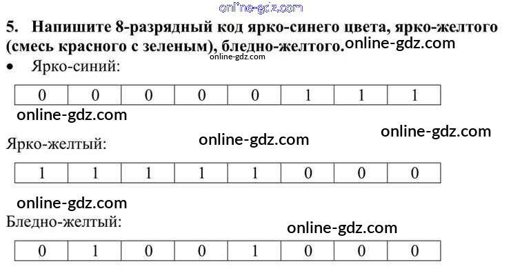 Готовые домашние задания по Информатике за 10 класс Учебник Семакин, Хеннер Базовый уровень 2017 - §6. Представление текста, изображения и звука 5