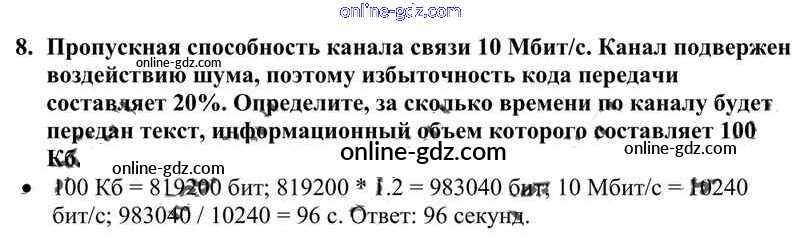 Готовые домашние задания по Информатике за 10 класс Учебник Семакин, Хеннер Базовый уровень 2017 - §8. Передача информации 8