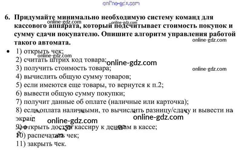 Готовые домашние задания по Информатике за 10 класс Учебник Семакин, Хеннер Базовый уровень 2017 - §9. Обработка информации и алгоритмы 6