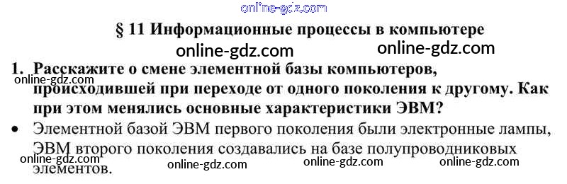 Готовые домашние задания по Информатике за 10 класс Учебник Семакин, Хеннер Базовый уровень 2017 - §11. Информационные процессы в компьютере 1