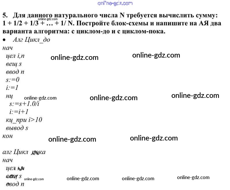 Готовые домашние задания по Информатике за 10 класс Учебник Семакин, Хеннер Базовый уровень 2017 - §13. Структура алгоритмов 5