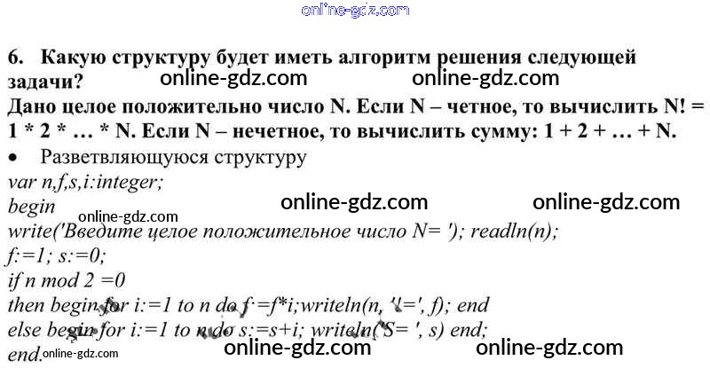 Готовые домашние задания по Информатике за 10 класс Учебник Семакин, Хеннер Базовый уровень 2017 - §13. Структура алгоритмов 6