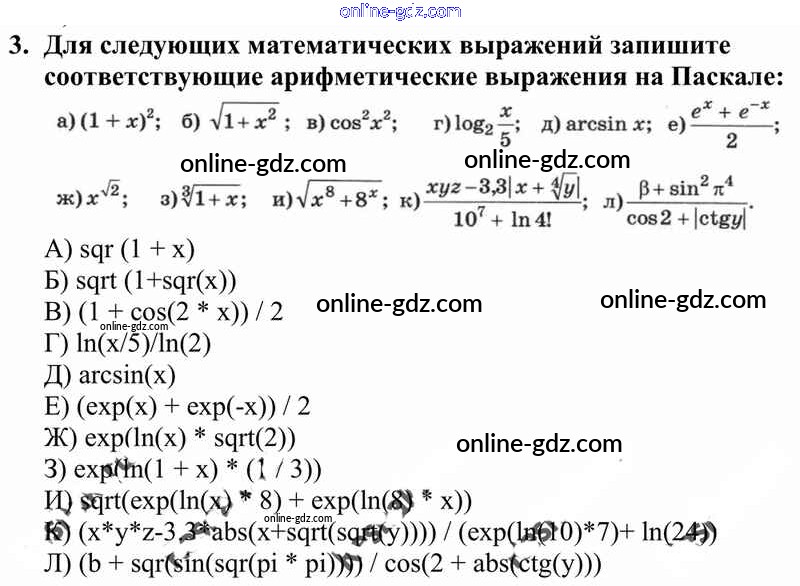 Готовые домашние задания по Информатике за 10 класс Учебник Семакин, Хеннер Базовый уровень 2017 - §16. Операции, функции, выражения 3